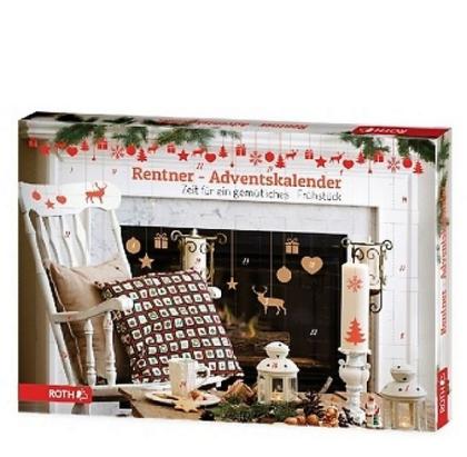ROTH Rentner-Adventskalender zum Frühstück, bestückt mit 24 Frühstücks- und Genussartikeln wie z.B. Marmelade, Brotaufstriche, Tees und Instantkaffees Maße: (B)500 x (T)40 x (H)350 mm (80257)