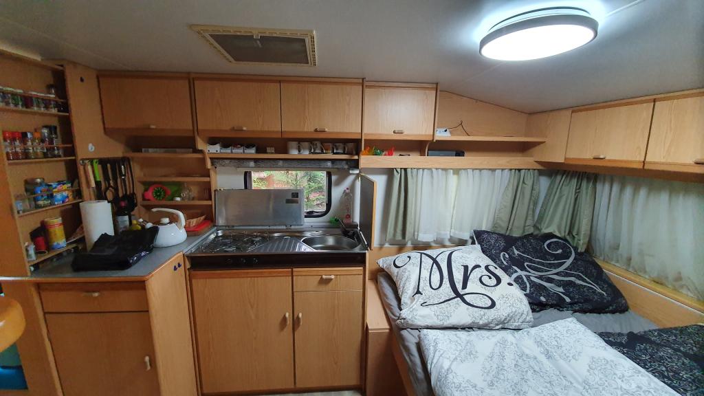 Ich kann versichern, dass unser "Oldie" für sein Alter in einem super guten und gepflegten Zustand ist. Absolut dicht, keine Feuchtigkeit im Wagen, keinerlei Wassereinbruch, kein Schimmel und alle Gerätschaften die werkseitig verbaut sind funktionieren einwandfrei. Als wir ihn2021 kauften bekam er mangelfrei TÜV, frische "Füße" und hat auch in diesem Jahr die alle 2 Jahre durchzuführende Gasprüfung ohne Mängel bestanden. Seitdem Steht er dauerhaft auf dieser Parzelle.