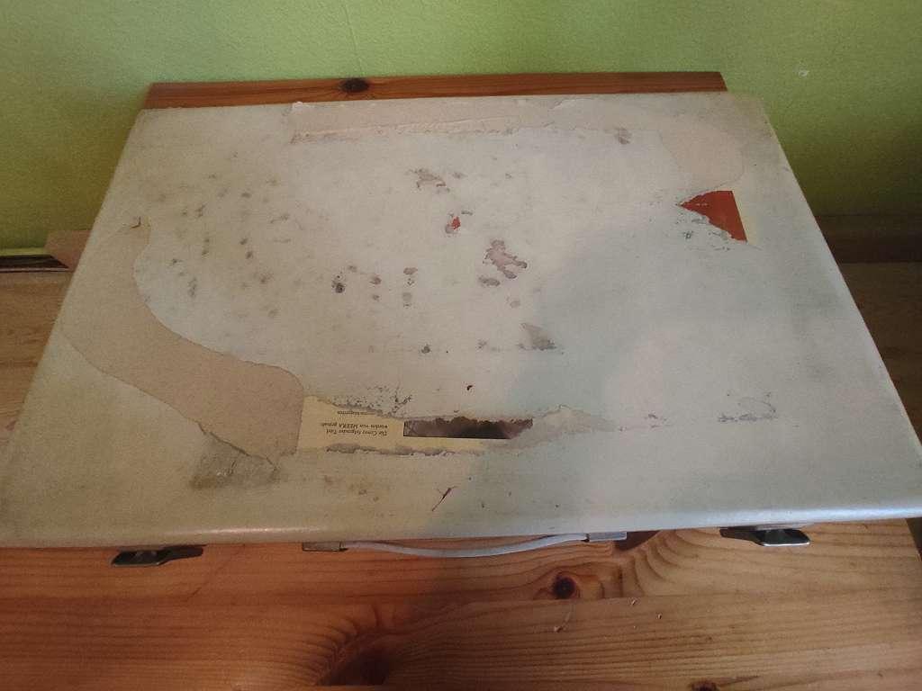 Innen neuwertig, Außenseite (Oberseite) leider beschädigt.