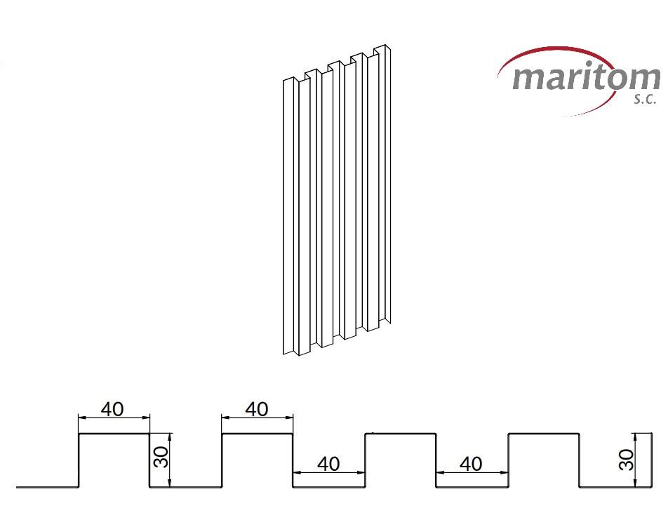 - Wandverkleidung: Blechlamelle 40×30×40 mm