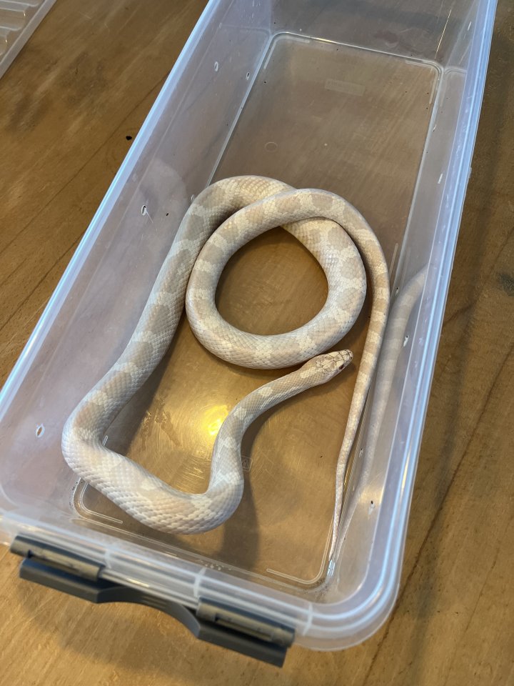 Ich verkaufe aus Platzgründen meine Kornnatter „Hugo“. Er ist ca. 8 Jahre alt, etwa 1,20m Länge und fällt besonders durch seine Albino Färbung auf. Er ist handzahm, hat aber sonst gern seine Ruhe. Anfänger geeignet.