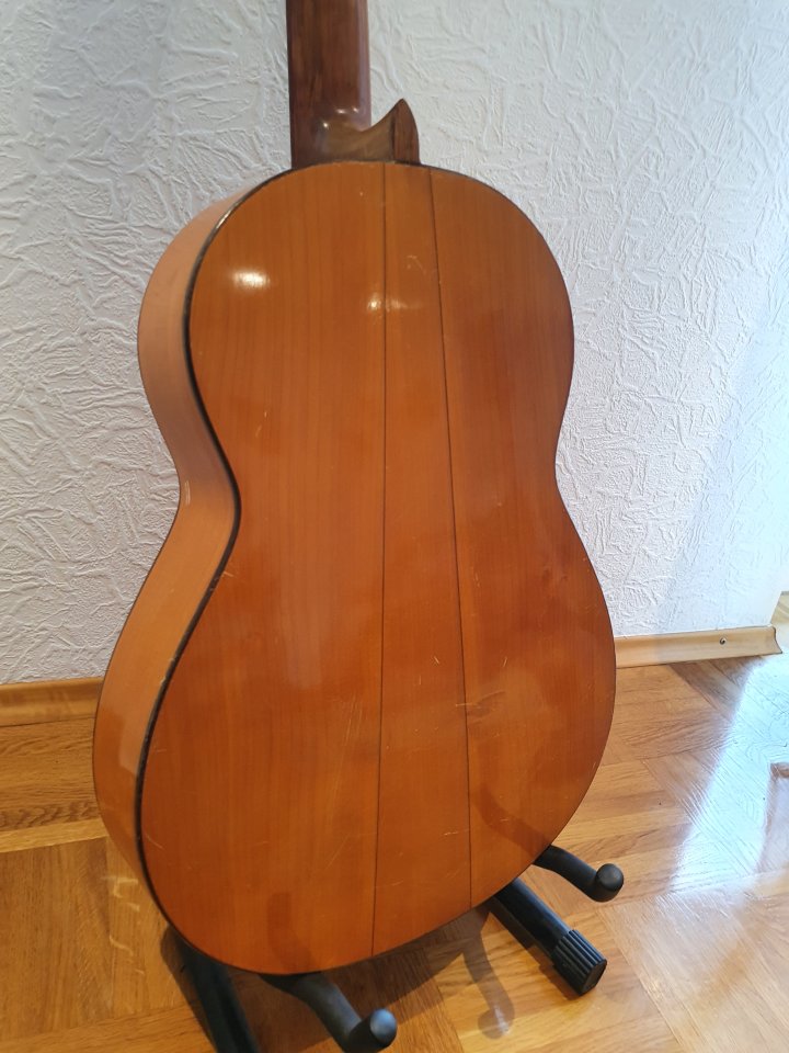 Die Gitarre ist in gutem, spielbarem Zustand. Der Hals ist gerade, die Saitenlage sehr flach (für Flamenco geeignet) Alle Risse sind repariert. Steg sitzt fest. Neu bundiert, neue sehr hochwertige Mechaniken. Dennoch hat die Gitarre starke Gebrauchsspuren!