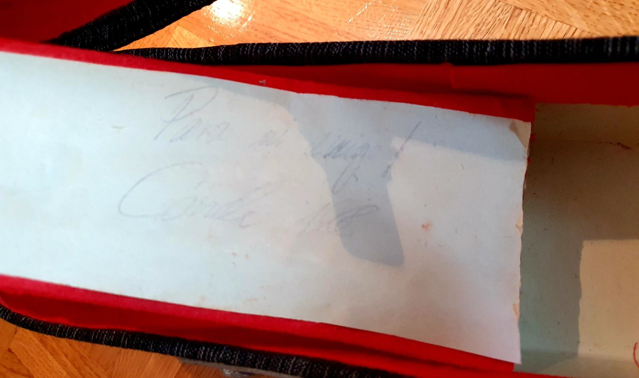 Die Jahreszahl 68 ist auf dem Etikett handschriftlich eingetragen. Allerdings ist die Tinte über die Jahre ausgeblichen und verschwunden. Den Abdruck "68" den der Stift hinterlassen hat kann man im richtigen Winkel aber noch erkennen.