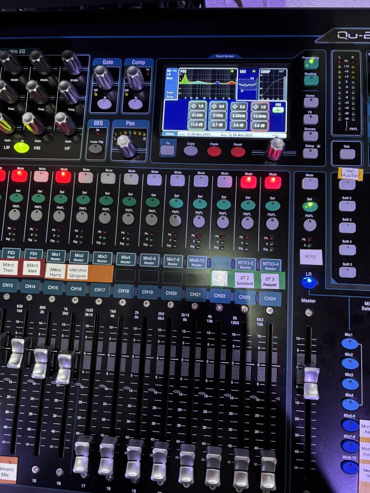 Ich biete ein Digitalmischpult v. Allen& Heath QU-24 Chrome mit Case zum Verkauf an.