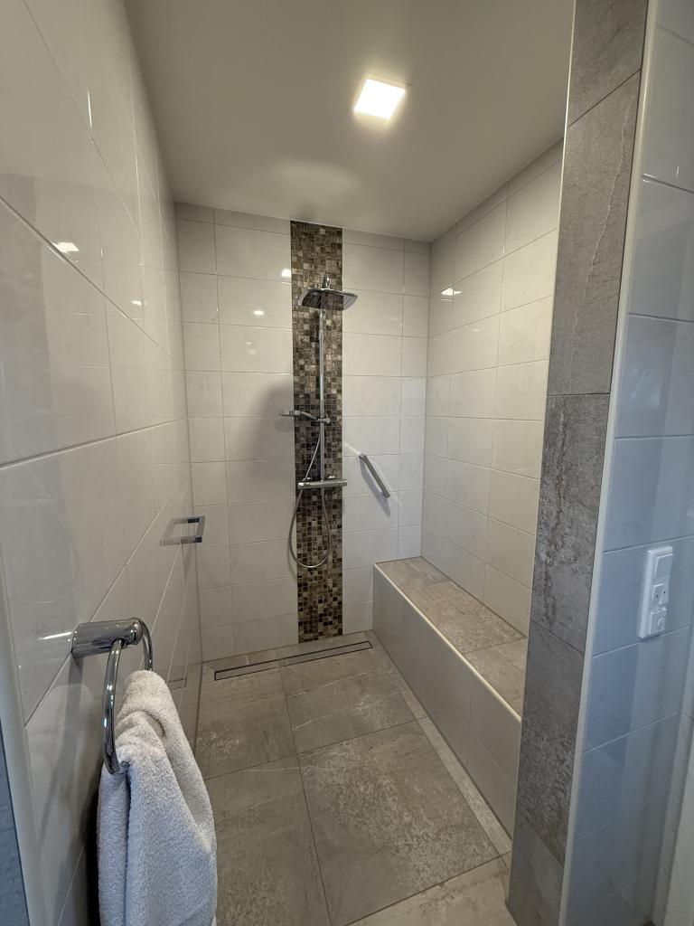 • Großes, seniorenfreundliches Bad mit begehbarer Dusche, separates WC