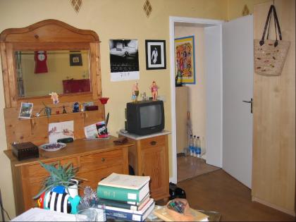 Vermietet wird ein Zimmer (16m²) mit Balkon in einer Zweizimmerwohnung im 2. OG eines Mehrfamilienhauses.Flur, Küche mit EBK, Tageslichtbad werden gemeinsam benutzt und sind vollständig mobliert. Zimmer unmöbliert, kann jedoch nach Absprache teilweise möbliert werden.Abstellraum im Keller. Fahrradabstellmöglichkeit im Hof.Frei ab 15.12-0.7978 oder 01.01-0.7978,Warmmiete: 360,- Euro, Kaution: 500,- EuroMieterinnen bevorzugt!