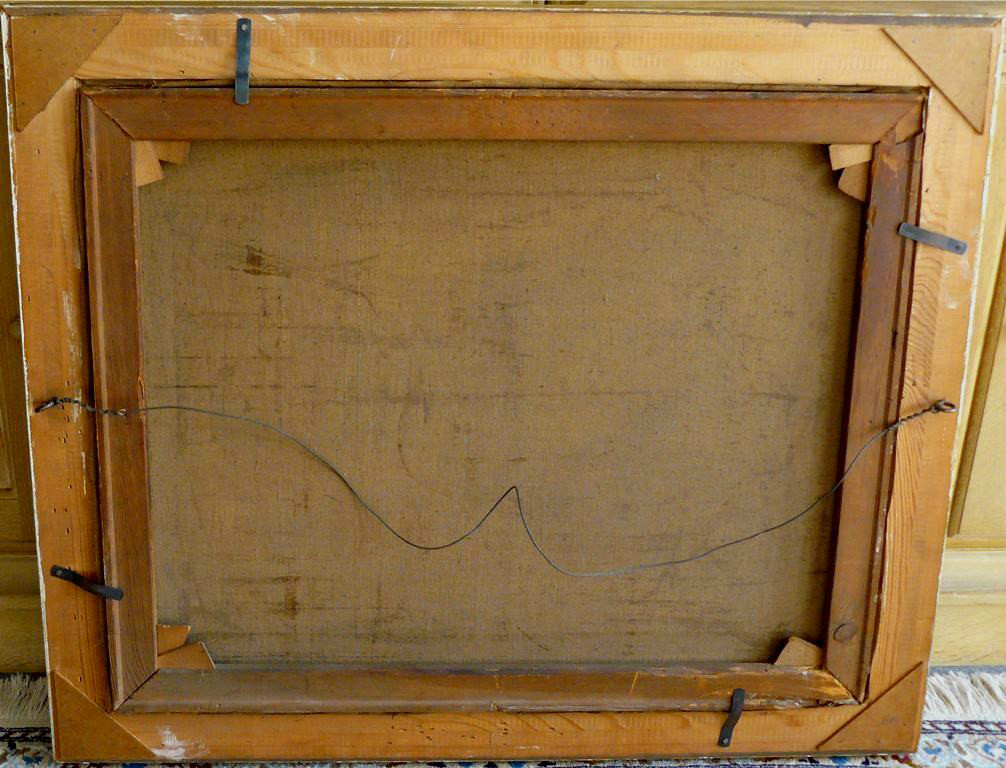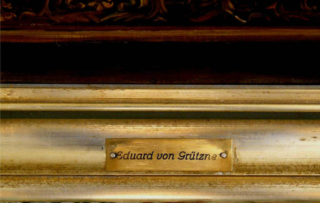 Auf dem Rahmen altes Messingschild mit Gravur, bez. "Eduard von Grützner". In wie weit Grützner an der Schaffung des Bildes beteiligt ist, ist unklar, sicher ist Grützner hat dieses Motiv in mehreren Versionen gemalt.