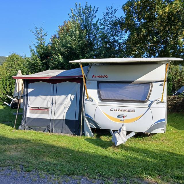 Biete super gepflegten Wohnwagen Dettleffs Camper 550 Bj 2024 mit Winterfestem Vorzelt und Aluboden, Platzmiete am Titisee bis 2026