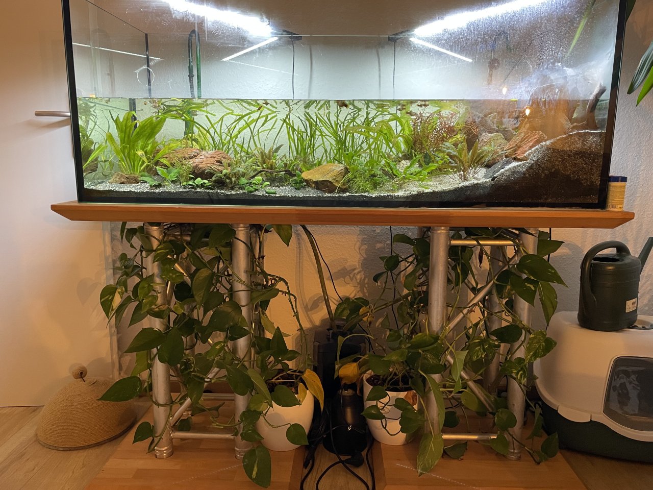Verkaufe mein Aquarium aufgrund eines Umzuges. Abzugeben sind das freistehende poolbecken von 120x50x50cm Das untergestell bestehend