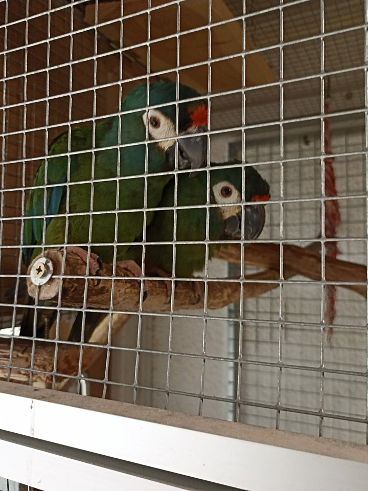 Hallo, hier biete ich Ihnen ein Zuchtpärchen Rotrücken-Aras an. Sie haben dieses Jahr zweimal Junge gezogen. Sie haben, für eine