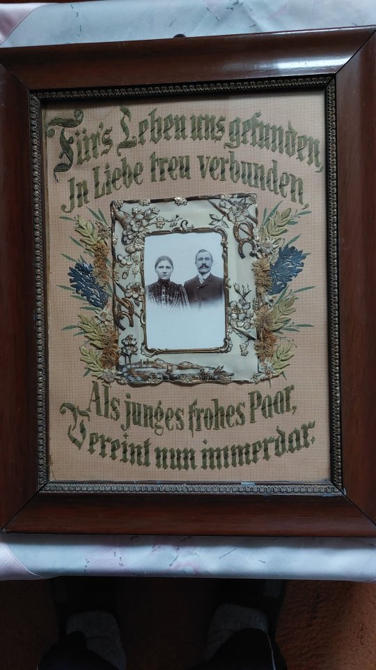 Biete von meinen Großeltern ein sehr gut erhaltenes gesticktes Bild, nehme an aus den 20 er oder 30 er Jahren zum Verkauf. Bitte nur