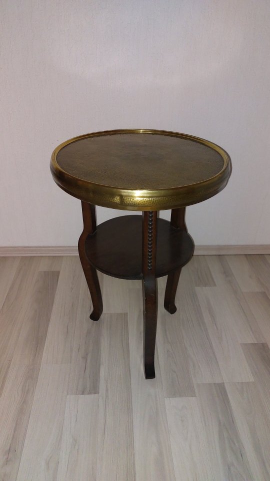 Biete sehr gut erhaltenen Rauchertisch mit Metallplatte aus den 30 Jahren zum Verkauf. Bitte nur