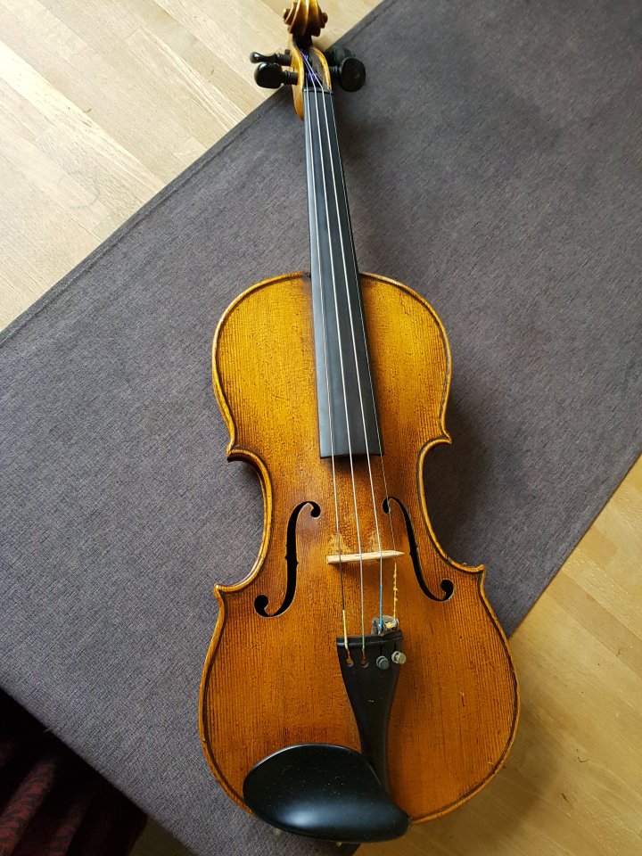 Hier ist ein gut erhaltenes Violoncello Piccolo abzugeben. Es ist darmbesaitet mit C G d a e1. Die Korpuslänge beträgt 69 cm, die