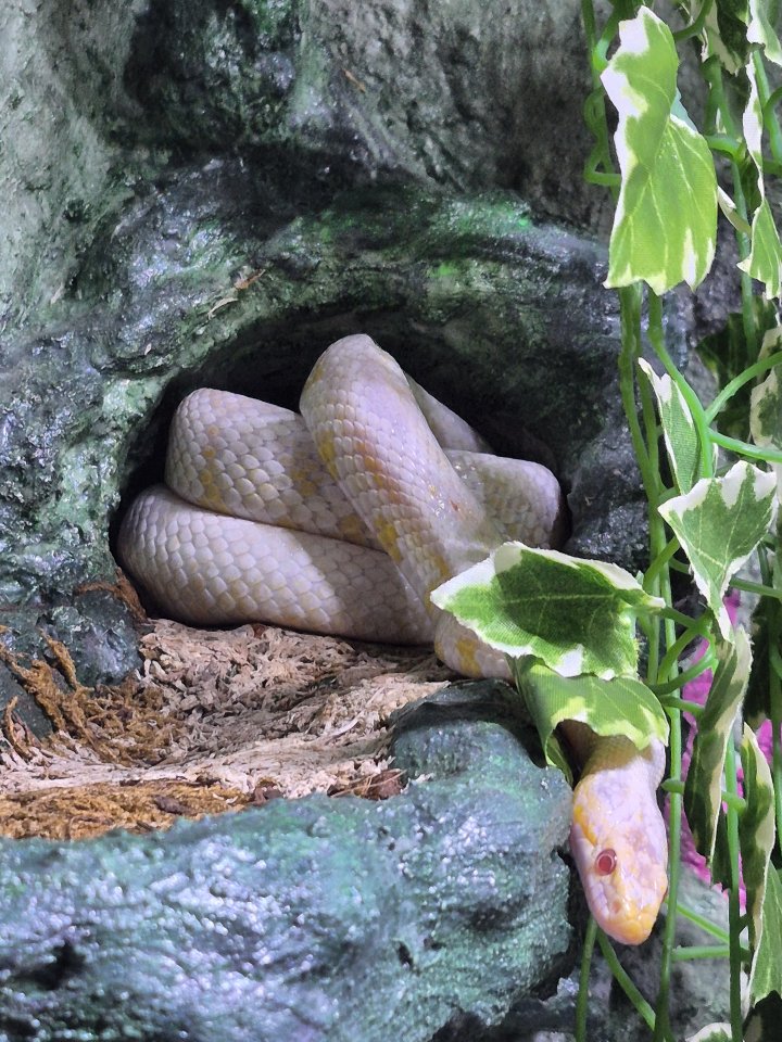 Hallo, Hätte ein Kornnatterweibchen in der farbe Snow abzugeben, ca. 2-4 Jahre alt, Kräftig, groß, Handzahm (manchmal Zickig),