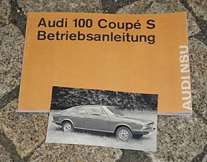 Betriebsanleitung für Audi 100 Coupé S mit 112 PS oder 115 PS Motor. Erste Serie mit rundlicher Front. Erstklassige Reproduktion der